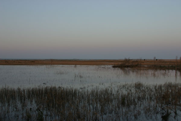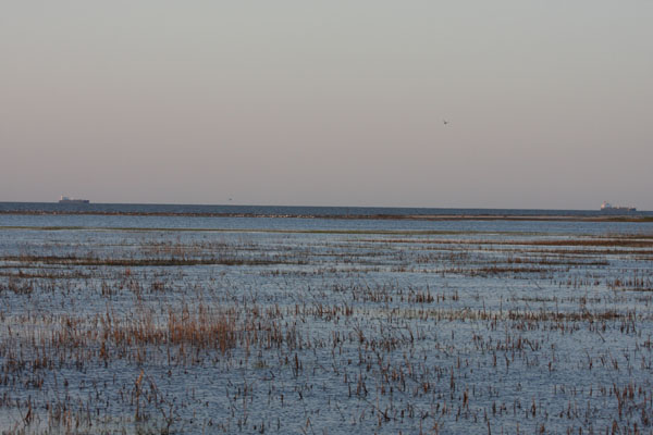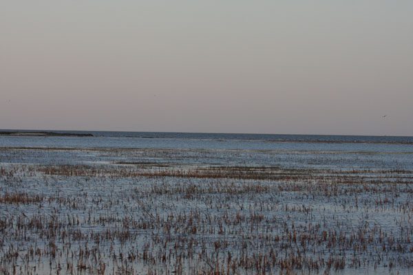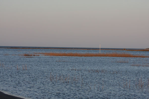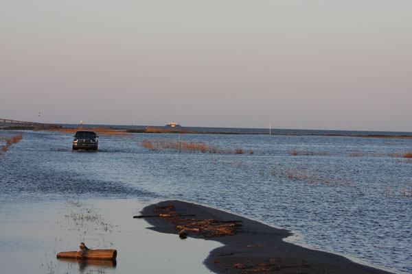 | High tide line located at deer hunting parking lot along Fowler Beach Road. |