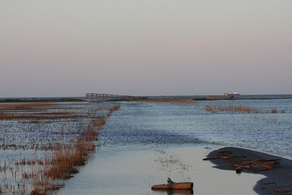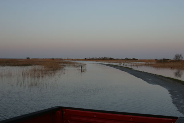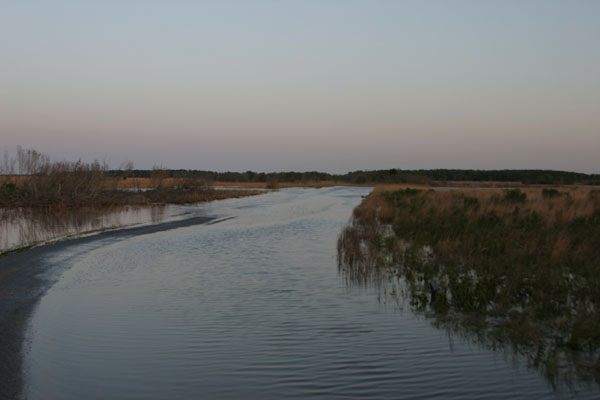 | Drive in toward Slaughter Canal bridge. |